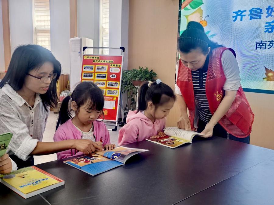 活动中,巾帼志愿者首先向家长们宣讲家庭教育重要性,普及科学育儿知识,倡导亲子共读的家庭教育模式。随后,亲子阅读环节正式开始,家长与孩子并肩而坐,共同挑选绘本、故事书,轻声朗读、相互分享阅读感悟,现场书香浓郁、温馨有爱。巾帼志愿者还穿插阅读互动小游戏,引导孩子大胆分享故事片段,增进亲子间的交流与默契。不少家长表示,亲子阅读既拉近了与孩子的距离,也让孩子养成了爱读书的好习惯。